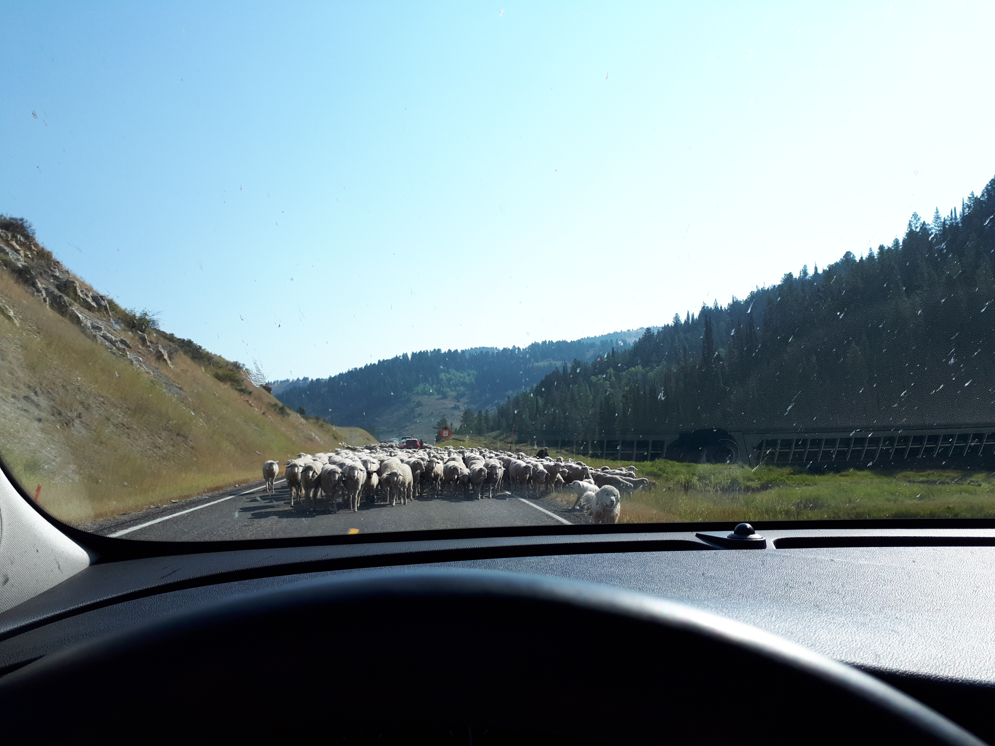 미국살면서 두번째로 신기했던 경험이다. 저 양떼들의 행차가 시작될때 거의 맨 처음에 양치기가 맨처음에 달려와서 미안하다고 사과하고 유유히 사라졌고 갑자기 양뗴들이 차를 향해서 다가왔다.